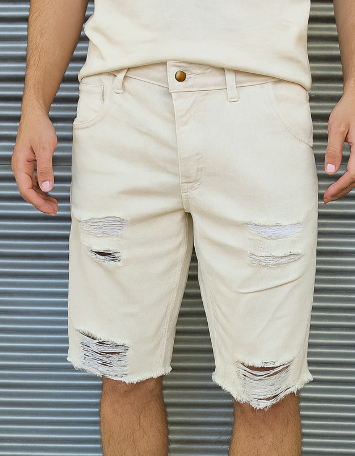 Bermuda beige con roturas: estilo moderno y frescura en cada detalle